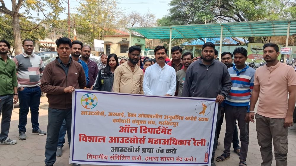 जिले में ऑल डिपार्टमेंट आउटसोर्स, अध्यापक, अंशकालीन एवं ग्राम पंचायत कर्मचारी संयुक्त मोर्चा, मध्यप्रदेश के बैनर तले जिले के आउटसोर्स कर्मचारियों ने अपनी विभिन्न मांगों को लेकर कलेक्टर कार्यालय पहुंचकर मुख्यमंत्री डॉ. मोहन यादव के नाम ज्ञापन सौंपा।