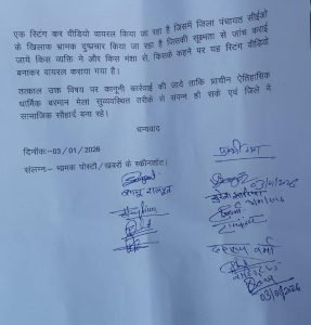 ज्ञापन में जिला पंचायत के मुख्य कार्यपालन अधिकारी (सीईओ) के विरुद्ध प्रसारित किए जा रहे कथित स्टिंग वीडियो को भी भ्रामक बताते हुए उसकी निष्पक्ष एवं सूक्ष्म जांच की मांग की गई है। साथ ही यह भी आग्रह किया गया है कि सोशल मीडिया का दुरुपयोग कर गलत सूचनाएँ फैलाने वालों पर सूचना प्रौद्योगिकी अधिनियम (आईटी एक्ट) एवं अन्य प्रासंगिक कानूनी प्रावधानों के तहत आवश्यक कार्रवाई की जाए।
