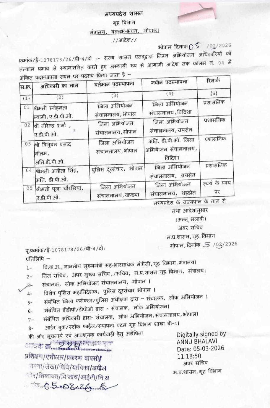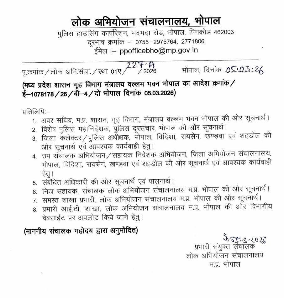 यह आदेश मध्यप्रदेश शासन गृह विभाग द्वारा जारी किया गया है, जिस पर अवर सचिव अन्नू भलावी के डिजिटल हस्ताक्षर हैं।