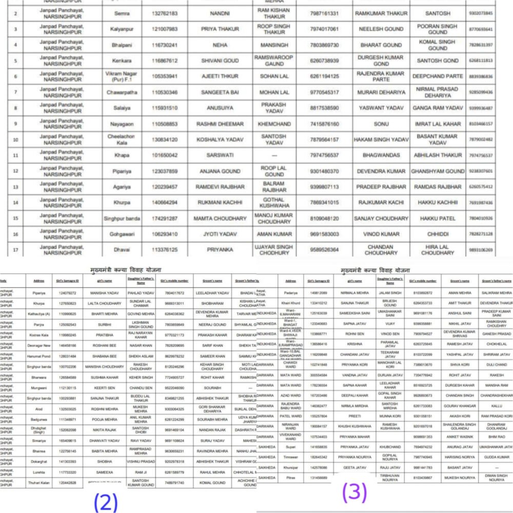 рдЖрдпреЛрдЬрди рд╕рдорд┐рддрд┐ рджреНрд╡рд╛рд░рд╛ рдЬрд╛рдирдХрд╛рд░реА рджреА рдЧрдИ рд╣реИ рдХрд┐ рд╕рднреА рд╡рд░-рд╡рдзреБ рдХреЛ рд╕реБрдмрд╣ 7:00 рдмрдЬреЗ рдирдИ рдЧрд▓реНрд▓рд╛ рдордВрдбреА, рдХрд░реЗрд▓реА рдореЗрдВ рдЙрдкрд╕реНрдерд┐рдд рд╣реЛрдирд╛ рдЕрдирд┐рд╡рд╛рд░реНрдп рд░рд╣реЗрдЧрд╛ред рд╡рд┐рд╡рд╛рд╣ рдореЗрдВ рд╢рд╛рдорд┐рд▓ рд╣реЛрдиреЗ рд╡рд╛рд▓реЗ рдЬреЛрдбрд╝реЛрдВ рдХреА рд╕реВрдЪреА рд╕рдВрдмрдВрдзрд┐рдд рдкреАрдбреАрдПрдл рдлрд╛рдЗрд▓ рдореЗрдВ рдЬрд╛рд░реА рдХреА рдЧрдИ рд╣реИ, рдЬрд┐рд╕рдореЗрдВ рд╣рд┐рддрдЧреНрд░рд╛рд╣реА рдЕрдкрдирд╛ рдирд╛рдо рджреЗрдЦ рд╕рдХрддреЗ рд╣реИрдВред