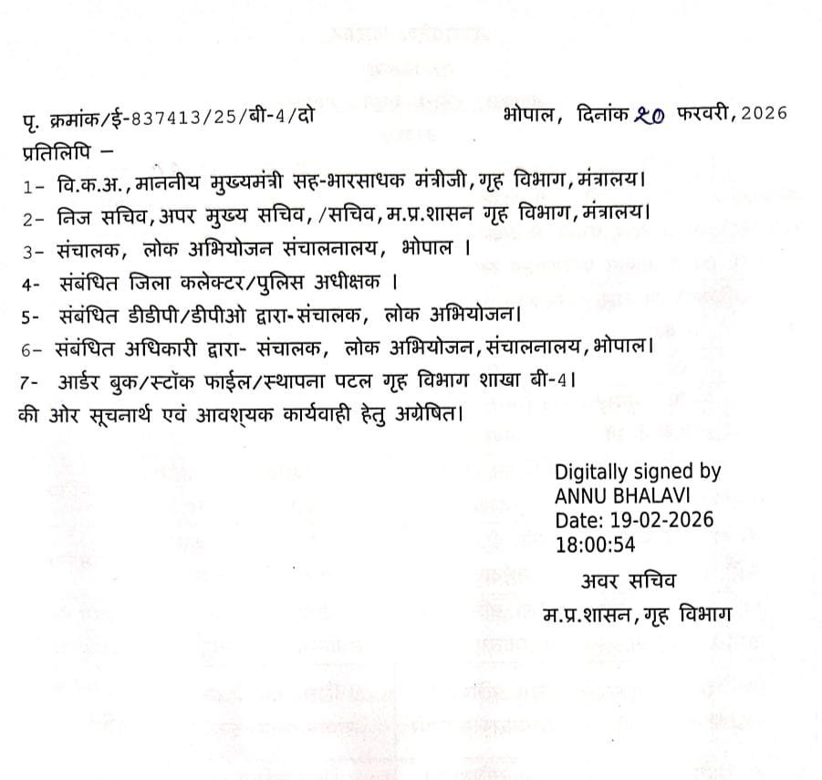 рдпрд╣ рдЖрджреЗрд╢ рдордзреНрдпрдкреНрд░рджреЗрд╢ рдХреЗ рд░рд╛рдЬреНрдпрдкрд╛рд▓ рдХреЗ рдирд╛рдо рд╕реЗ рдЬрд╛рд░реА рдХрд┐рдпрд╛ рдЧрдпрд╛ рд╣реИред