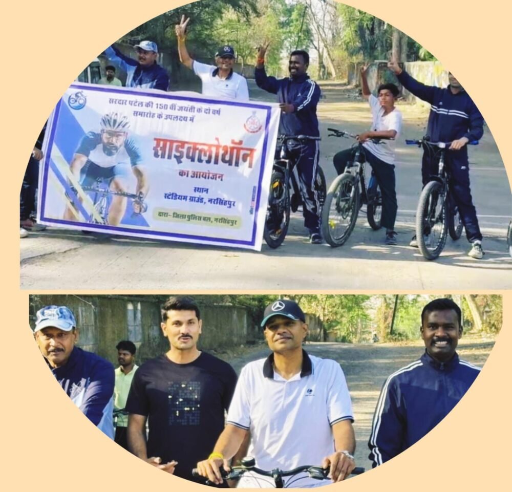 рдирд░рд╕рд┐рдВрд╣рдкреБрд░ред 28 рдорд╛рд░реНрдЪ 2026 рд▓реМрд╣ рдкреБрд░реБрд╖ рд╕рд░рджрд╛рд░ рд╡рд▓реНрд▓рднрднрд╛рдИ рдкрдЯреЗрд▓ рдХреА 150рд╡реАрдВ рдЬрдпрдВрддреА рдХреЗ рджреЛ рд╡рд░реНрд╖реАрдп рд╕рдорд╛рд░реЛрд╣ рдХреЗ рдЙрдкрд▓рдХреНрд╖реНрдп рдореЗрдВ рд╢рдирд┐рд╡рд╛рд░, 28 рдорд╛рд░реНрдЪ рдХреЛ рд╕реБрдмрд╣ 7 рдмрдЬреЗ рдЬрд┐рд▓рд╛ рдкреБрд▓рд┐рд╕ рдирд░рд╕рд┐рдВрд╣рдкреБрд░ рджреНрд╡рд╛рд░рд╛ рд╕реНрдЯреЗрдбрд┐рдпрдо рдЧреНрд░рд╛рдЙрдВрдб рдореЗрдВ рднрд╡реНрдп рд╕рд╛рдЗрдХреНрд▓реЛрдереЙрди рдХрд╛ рдЖрдпреЛрдЬрди рдХрд┐рдпрд╛ рдЧрдпрд╛ред рдЗрд╕ рдЖрдпреЛрдЬрди рдХрд╛ рдЙрджреНрджреЗрд╢реНрдп рдирд╛рдЧрд░рд┐рдХреЛрдВ рдХреЛ рд╢рд╛рд░реАрд░рд┐рдХ рдФрд░ рдорд╛рдирд╕рд┐рдХ рд░реВрдк рд╕реЗ рд╕реНрд╡рд╕реНрде рд░рд╣рдиреЗ рдХреЗ рд▓рд┐рдП рдкреНрд░реЗрд░рд┐рдд рдХрд░рдирд╛ рд░рд╣рд╛ред