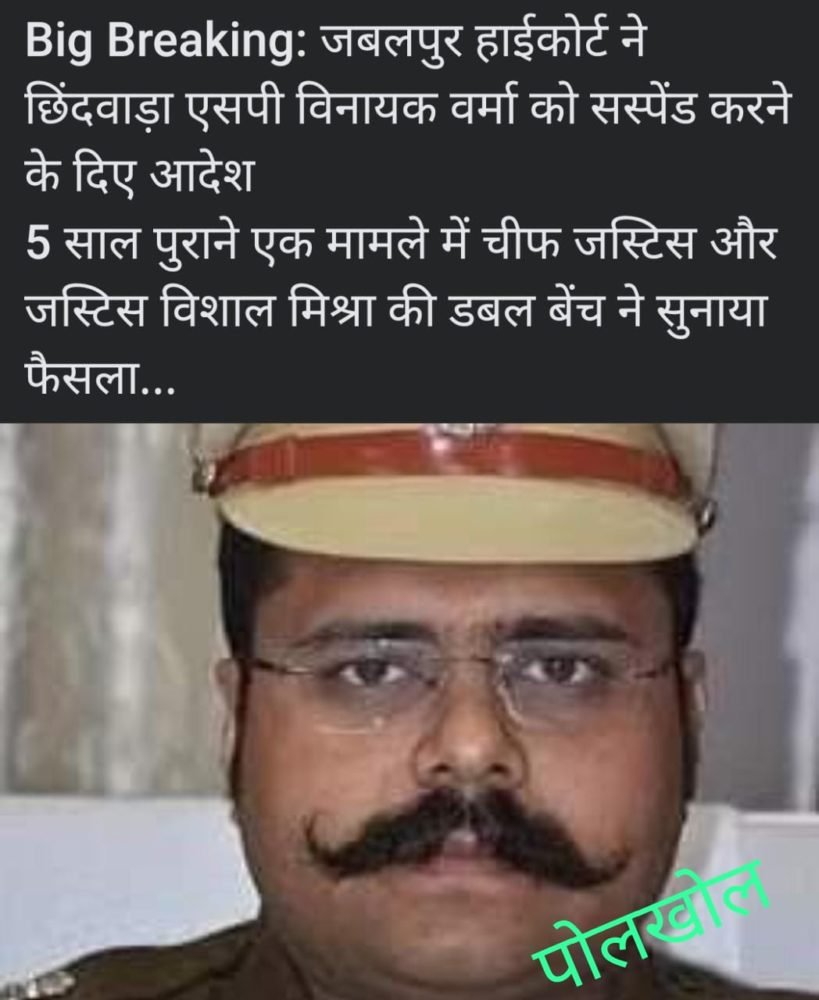 Breking – हाईकोर्ट ने दिये छिंदवाड़ा एसपी विनायक वर्मा को सस्पेंड करने के आदेश @ पोलखोल न्यूज़