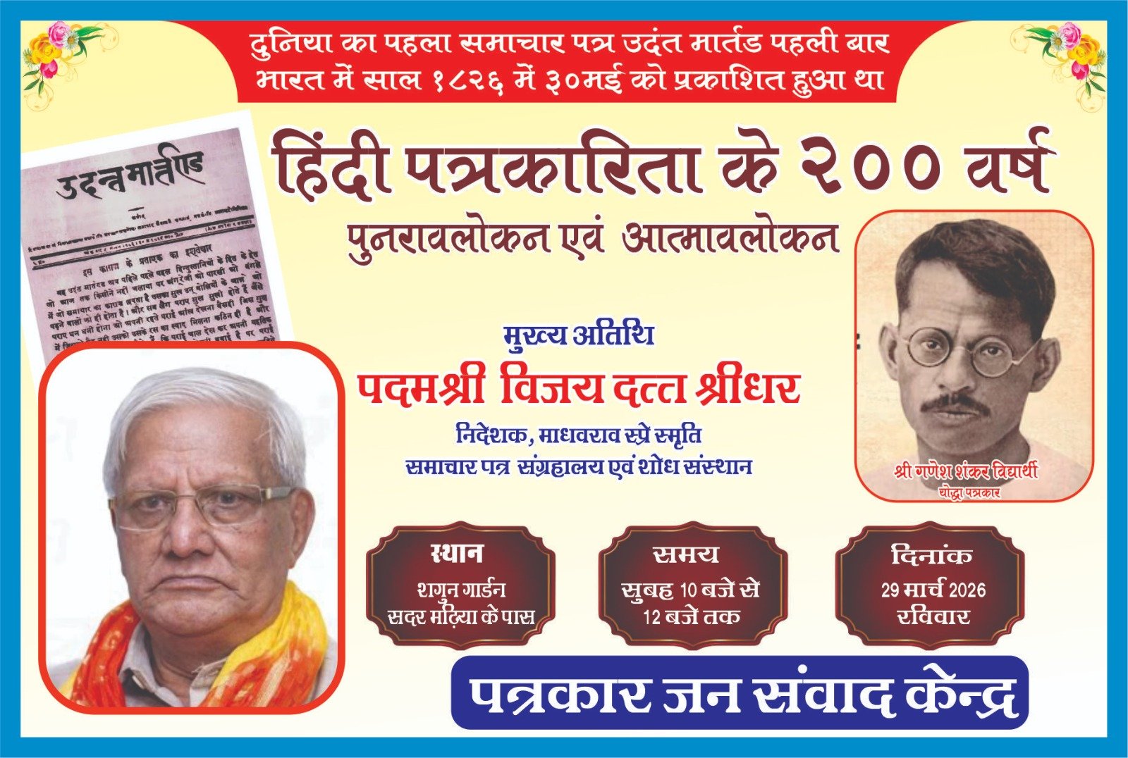 🖊️ “200 साल का सफर: आत्ममंथन और पुनरावलोकन के बीच सजी हिंदी पत्रकारिता की विरासत” March 29, 2026 No Comments Read More »