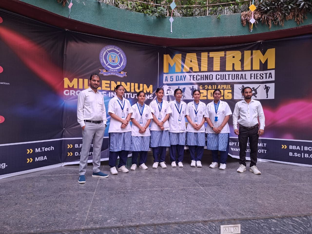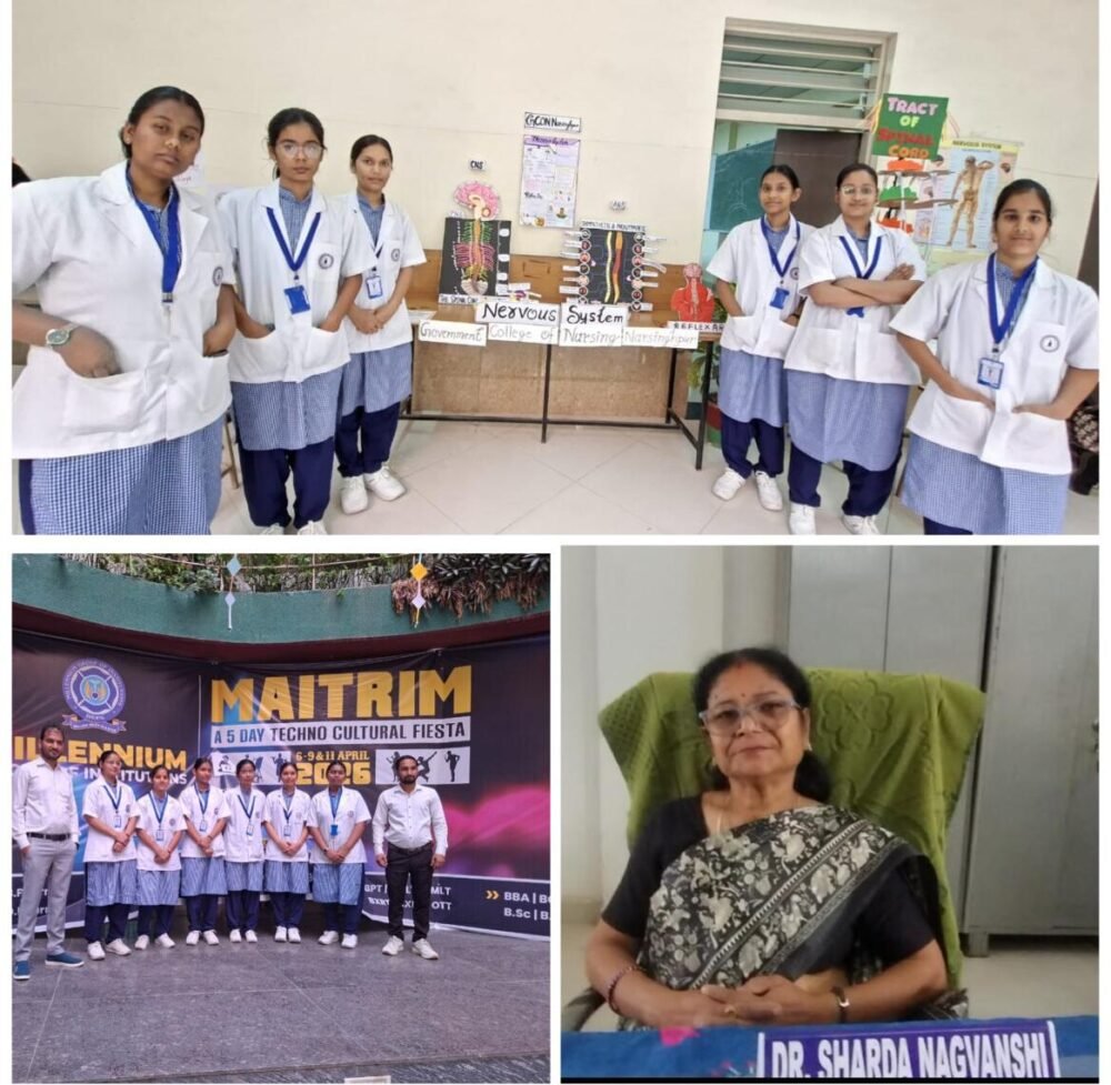 नरसिंहपुर। 7 अप्रैल 2026 भोपाल स्थित मिलेनियम ग्रुप ऑफ इंस्टीट्यूशंस में आयोजित मैत्रिम 2026 कार्यक्रम में शासकीय नर्सिंग कॉलेज, नरसिंहपुर की छात्राओं ने मेडिकल मॉडल प्रेजेंटेशन में उत्कृष्ट प्रदर्शन करते हुए जिले का मान बढ़ाया।